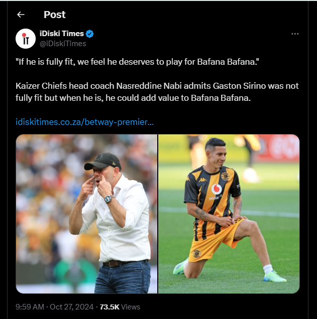 As South Africa looks to build a formidable squad for future competitions, Nabi's call for Gaston Sirino highlights the importance of recognizing and harnessing local talent, regardless of their origins. If selected, Sirino could become a key player for Bafana Bafana, adding depth and skill to the lineup as the team aims for success on the international stage.