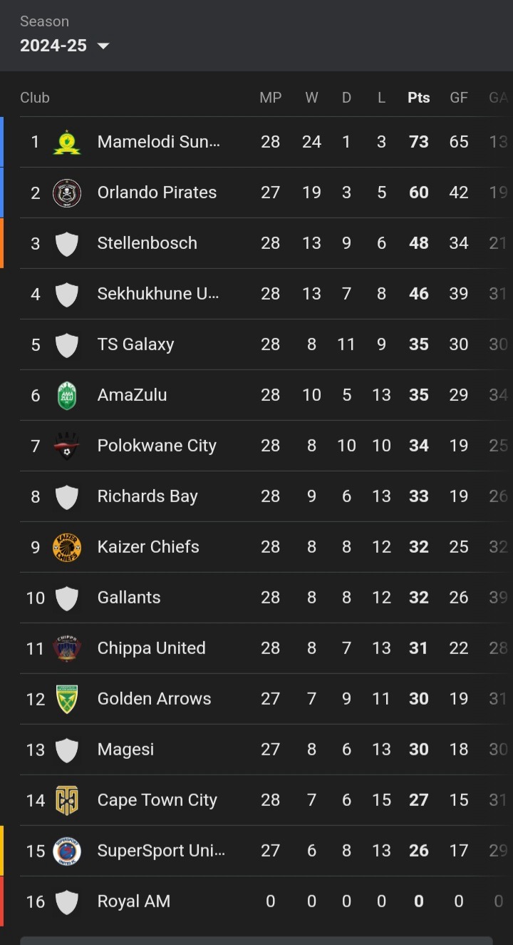 Polokwane City, on the other hand, secured their spot in the top eight with the hard-earned point, finishing the season on 34 points — a notable achievement in a competitive campaign.