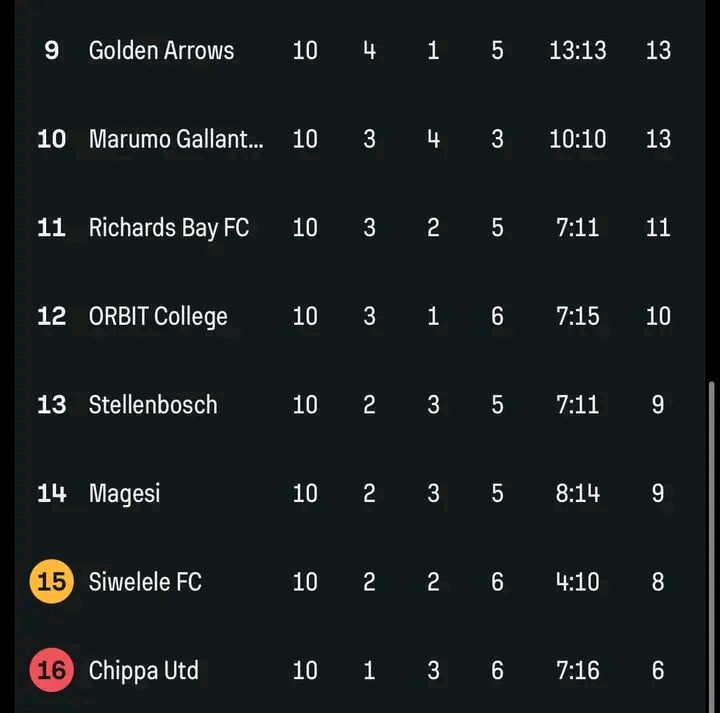 Further down the table, Stellenbosch have shown remarkable improvement, climbing above Siwelele after a series of strong performances. The Cape side’s determination and resilience have been key to their rise, proving that consistent effort can dramatically shift a team’s fortunes. Siwelele, meanwhile, continue to linger near the bottom despite managing to hold stronger teams to draws, highlighting the crucial importance of consistency in the Premiership.